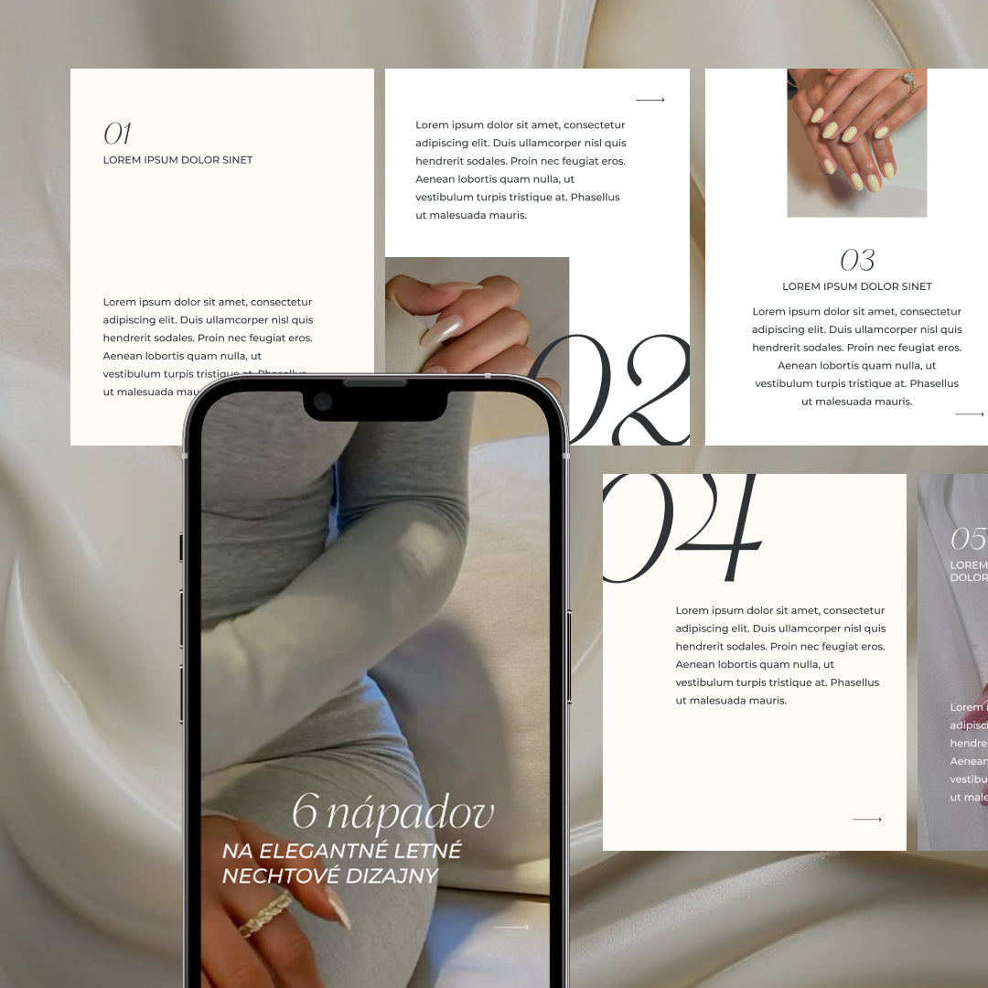 Táto digitálna šablóna je navrhnutá pre všetkých, ktorí chcú vystavať konzistentný, profesionálny a zároveň jemný vizuál – bez potreby najímať grafika. Ideálna pre salóny krásy, dizajnové štúdiá, wellness a fitness značky, handmade tvorcov, interiérové ateliéry a všetky projekty, ktoré potrebujú vizuálnu identitu s atmosférou prémiového magazínu.